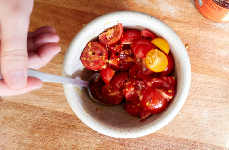For all the flavor and mouthfeel of a simple tomato sandwich without the juice on the front of your shirt, try our deconstructed tomato sandwich.