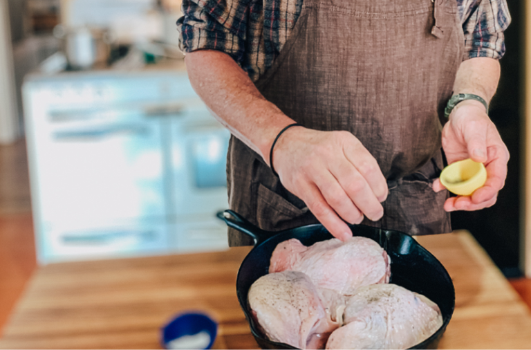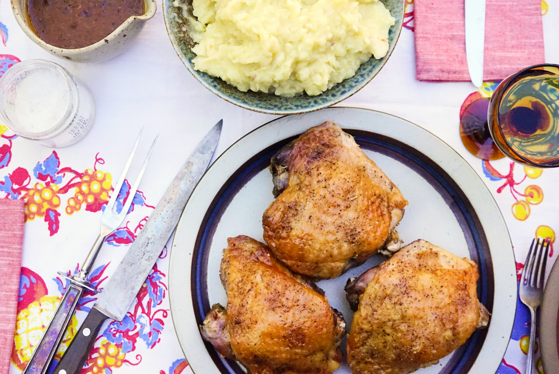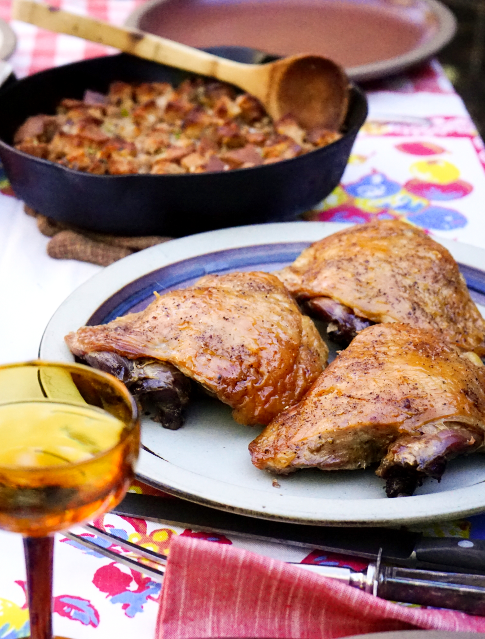 It’s our favorite way to cook turkey, and thighs are easy to find this time of year. You can make this a day or two ahead of time."