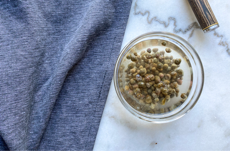 Soak a couple of tablespoons (or more if you want extras) of Pantellerian salt-packed capers in water for about 15 minutes. Drain and pat dry with a towel. Cover the bottom of a skillet with extra virgin olive oil, heat it until it shimmers, and fry the capers over medium-low until they’re crispy about 10 minutes.