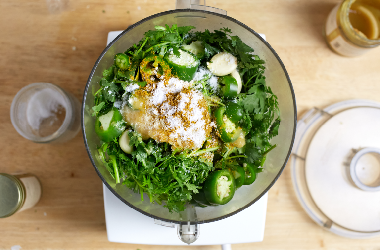 While you can chop everything by hand or use a mortar and pestle for smaller batches, a food processor makes this much easier.
