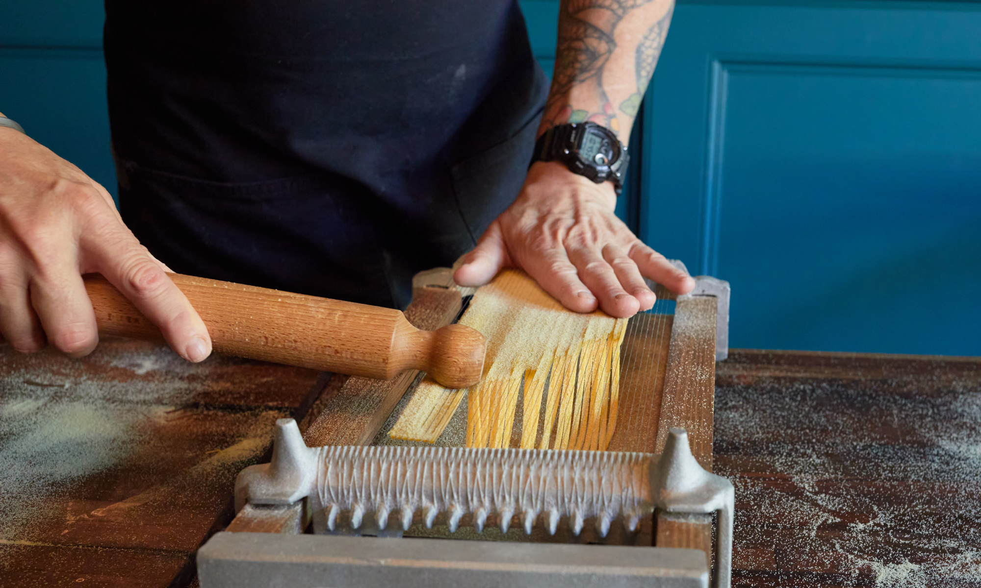 cutting his teeth at Jazz de Opus before spending a decade under the mentorship of local legend Vitaly Paley. In recent years, he’s been exploring his Italian heritage through his pop-up Estes, named after his family’s Americanized surname. Now, his soulful, old-school red sauce cooking is available beyond the pop-up, with his fresh pasta and homemade sauces stocked regularly at Wellspent Market.