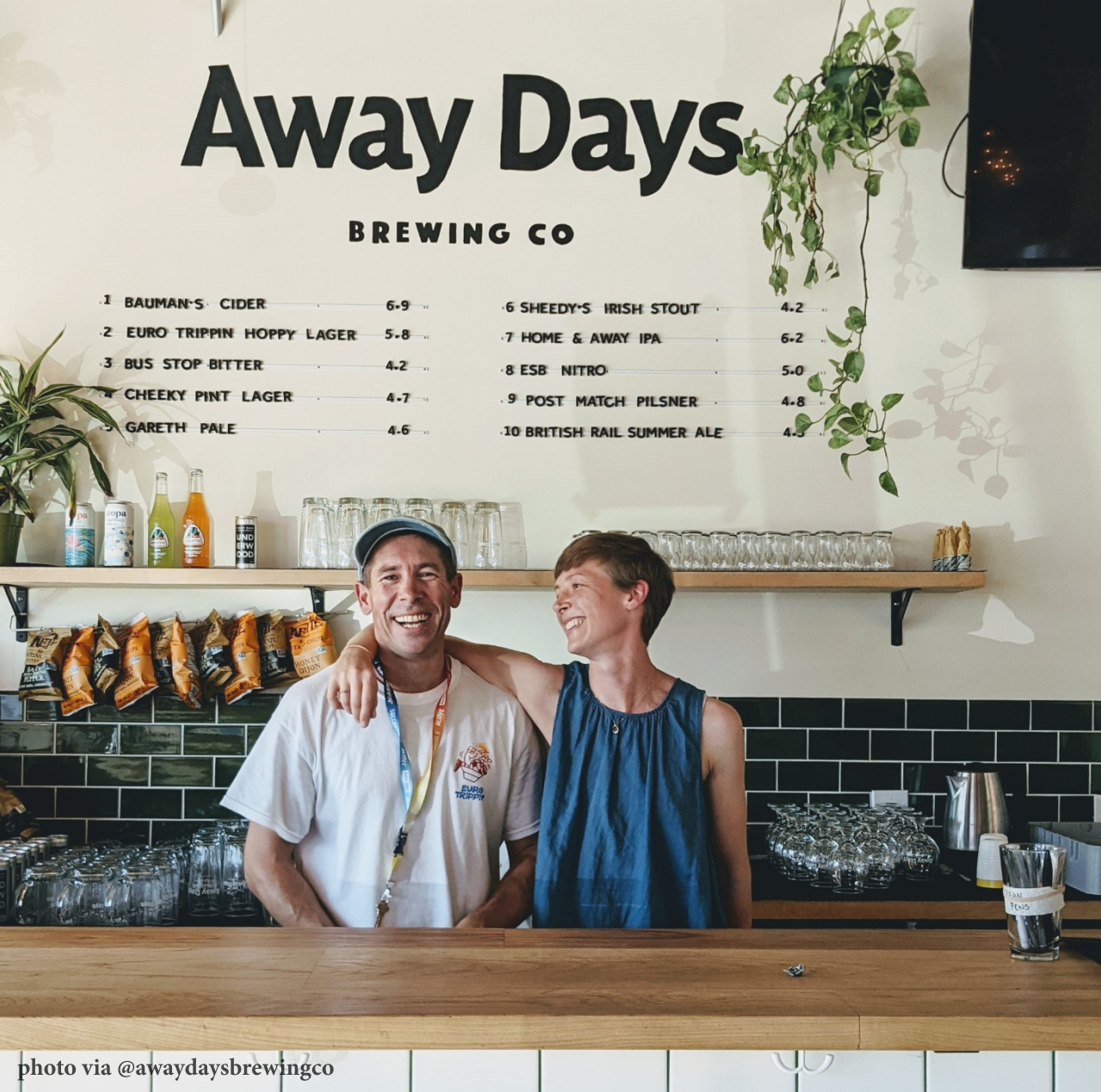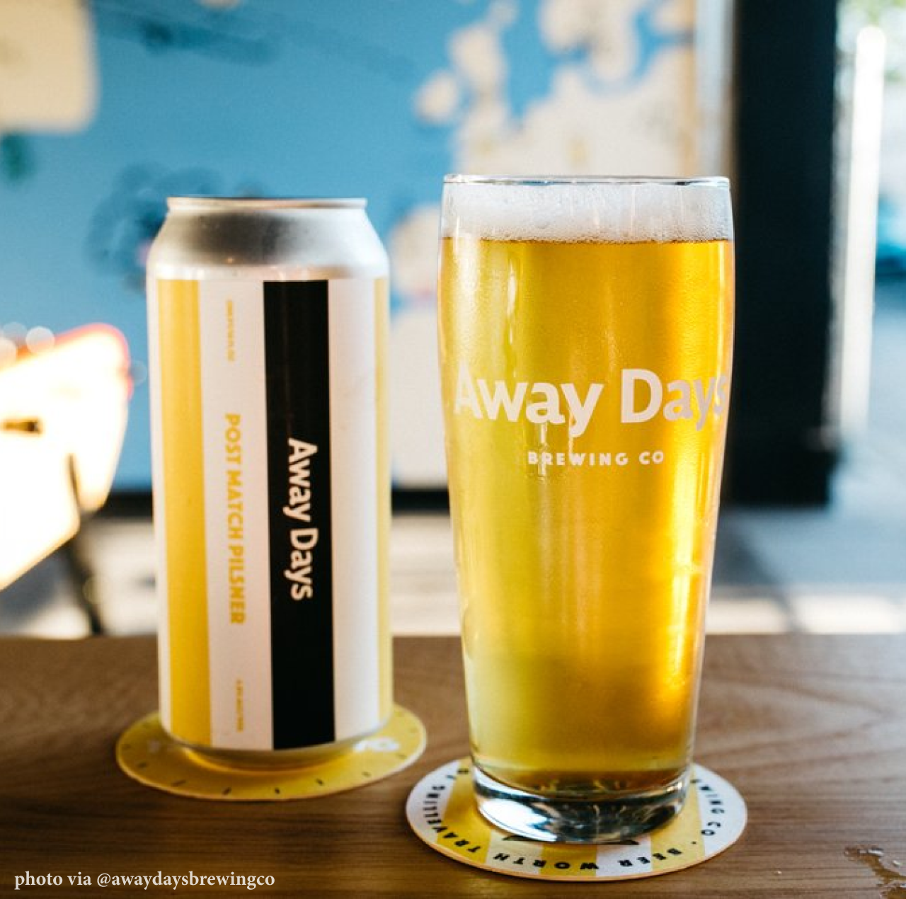 The Toffee Club quickly established itself as one of Portland’s most lively “sports bars” by playing every international soccer match possible on the bar’s giant drop-down screen, becoming a crucial piece of Portland’s ever-growing footie fanbase. In 2018, the small brewery next door closed, and after initially declining to take over the space (I mean, c’mon: 2 small kids, Pete still full time at Nike, a busy pub to manage… they were busy!) Niki and Pete eventually relented, realizing the opportunity for two Brits in Portland to own their own brewery was too good to pass up. Away Days Brewing officially, setting itself apart with a cheeky design scheme and bright color palette that tapped into their own nostalgia for travel and discovery.