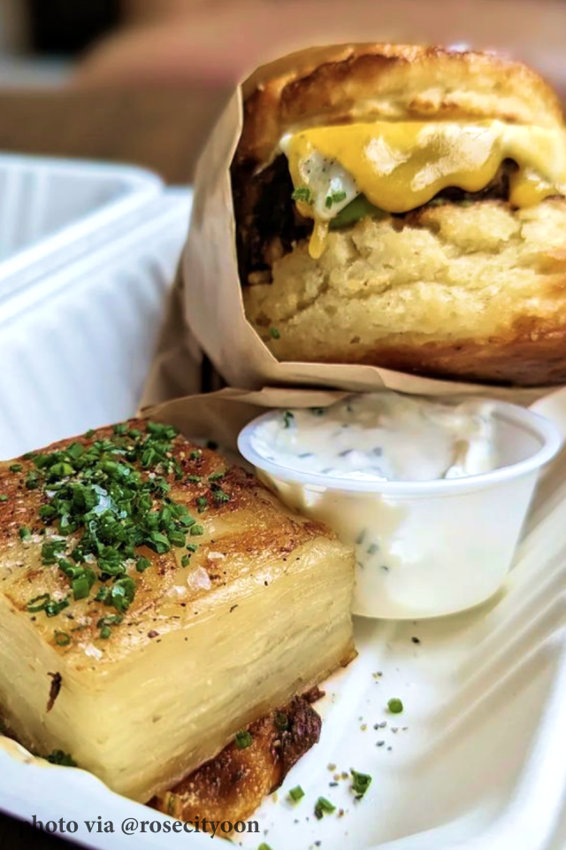 For Justin, “food is a love language,” and after graduating from culinary school he moved to Los Angeles, where he cut his teeth at some of that city’s most beloved brunch spots (including the legendary Eggslut), finding common cause with a host of other up-and-coming Filipino-American chefs. He eventually landed in Portland, and since last October he’s been operating out of Baon Kainan (another superlative Fil-Am joint with a cart just a few blocks from Wellspent) on Monday and Tuesday mornings. For Justin, being able to make and serve his sandwiches on pan de sal–a traditional Filipino roll–is a dream come true. Pan de sal was an integral part of Justin’s childhood, baked fresh and served with every meal. “There are Filipino bakeries all over the Bay Area” he says, and offering homemade pan de sal to Portlanders “allows me to feel connected to my roots.”