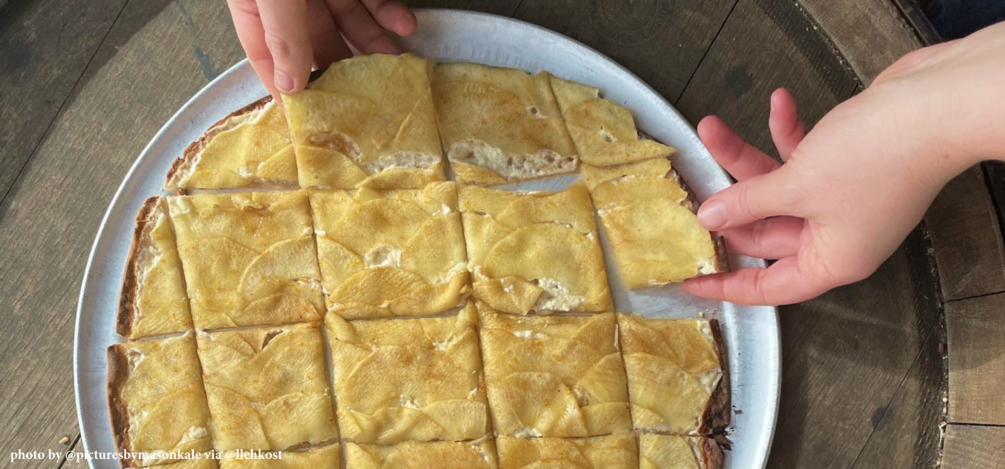 Originally from Alsace, in northeastern France, Leila Schneider’s love for food and gathering runs deep, and she strongly believes that cooking is a form of both care and community. After a decade spent farming in Oregon and Washington, where she met partner-in-crime Alexandra Burton (herself an on-again-off-again 20 year veteran of Portland’s food scene), Leila moved to Portland to bake bread at Cafe Olli. She recently launched the roving pop-up Tarte Flambée, where together with Alexandra she shares her passion for simple, seasonal, and carefully tended cuisine while highlighting the eponymous Alsatian dish.