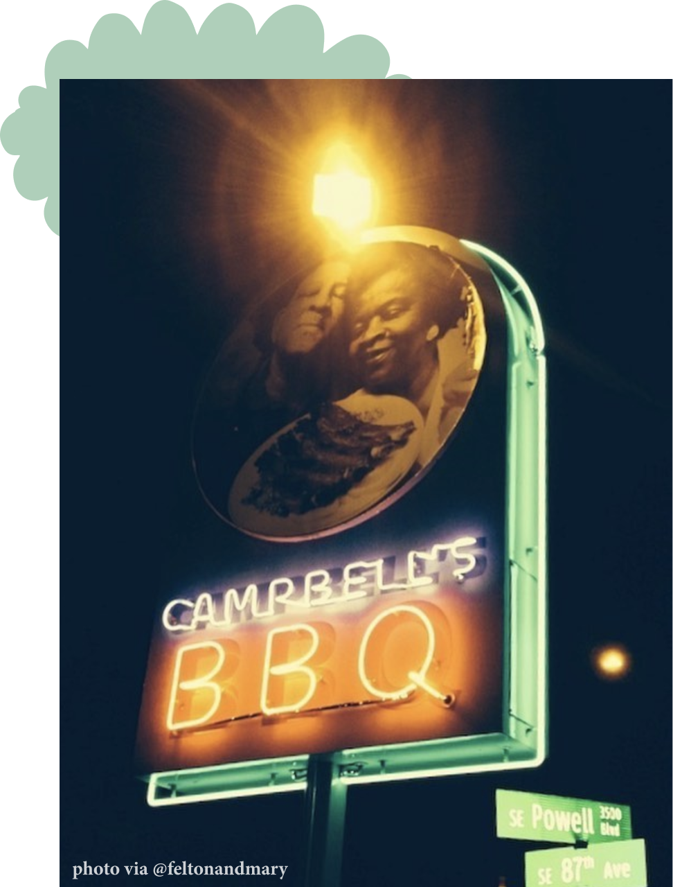 When they got to Portland, Felton & Mary found a small house on SE 87th and Powell. The retired NASA research technician built a massive brick pit inside, and Campbell’s Bar-B-Q opened its doors.The restaurant offered beef and pork ribs, brisket, turkey, chicken, and Portland’s best hot links made with Felton’s own recipe, all served with a sweet and smoky house-made sauce. The good food created a sense of community pride, and Campbell’s became a gathering place for the neighborhood.