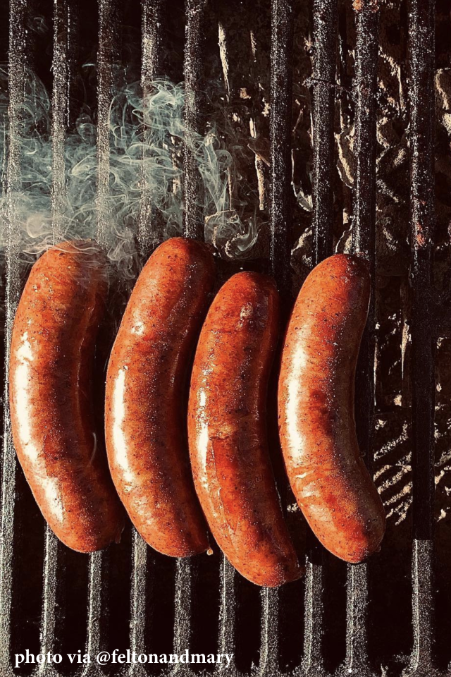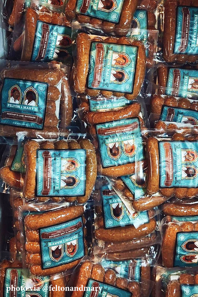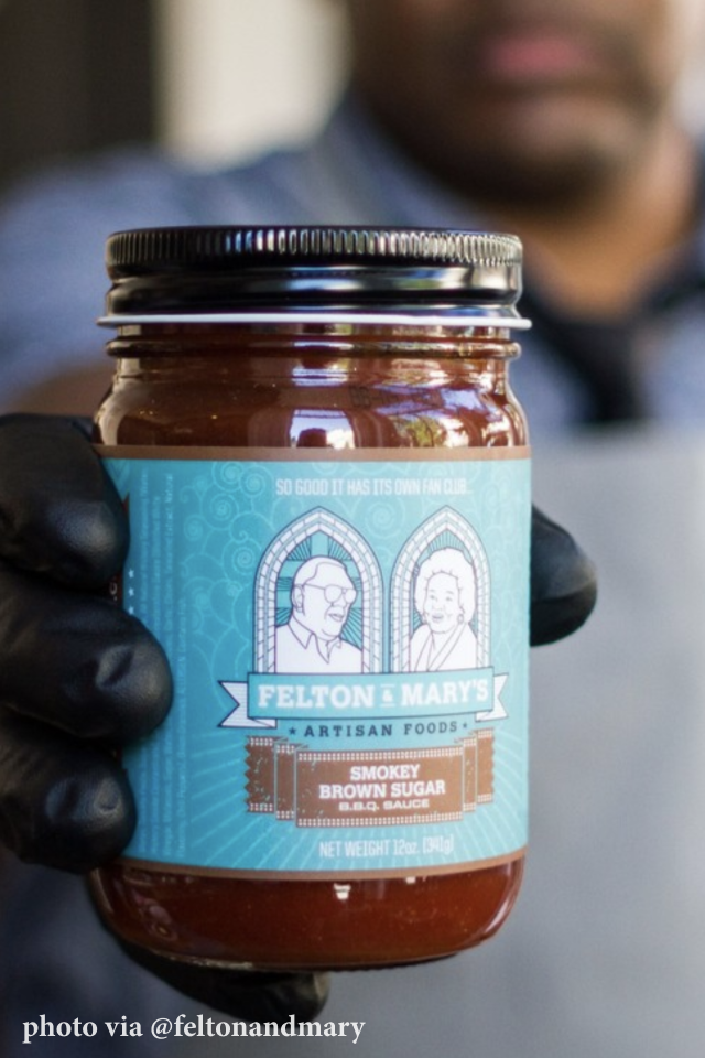 The restaurant’s been closed for more than a decade, but Felton and Mary’s grandson Tory Campbell wanted to honor his grandparents’ legacy, and a few years ago he started bottling the sauce he’d grown up eating at the family restaurant. Using original family recipes handed down through generations of Campbells, Tory and his wife Roxana’s Felton & Mary’s Artisan Foods make BBQ sauce, spice rub, and those very same legendary hot links.
