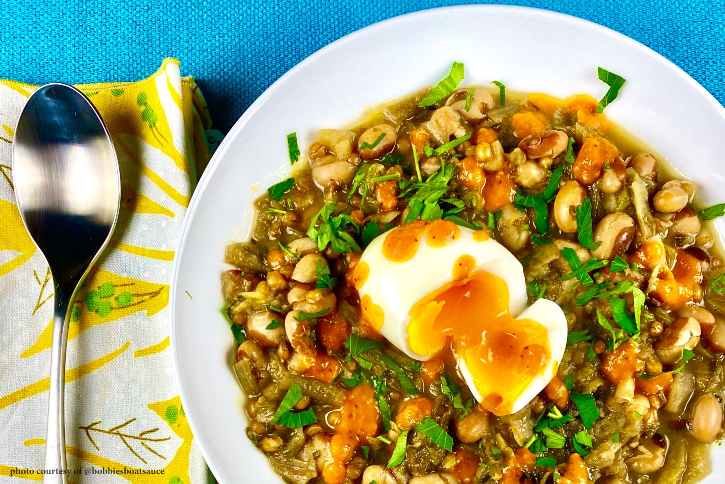 Fortify brothy beans with greens, grains, and splash of umami-rich Bobbie’s Boat Sauce.