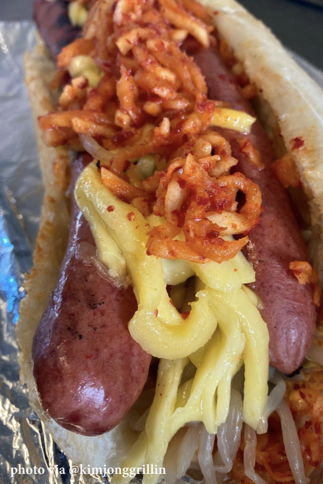 One of Portland's best hot dogs comes with fish sauce. At Kim Jong Grillin’ it’s not squirted on the bun like ball park mustard, but it’s an essential ingredient in the kimchi mayo that makes the KJG hot dog so tasty. The Korean-American mashup served at Han Ly Hwang’s cart on SE Division (4606 SE Division St) shows how a creative chef combines the traditional flavors of his familial culture with the favorite foods of his life-long home.