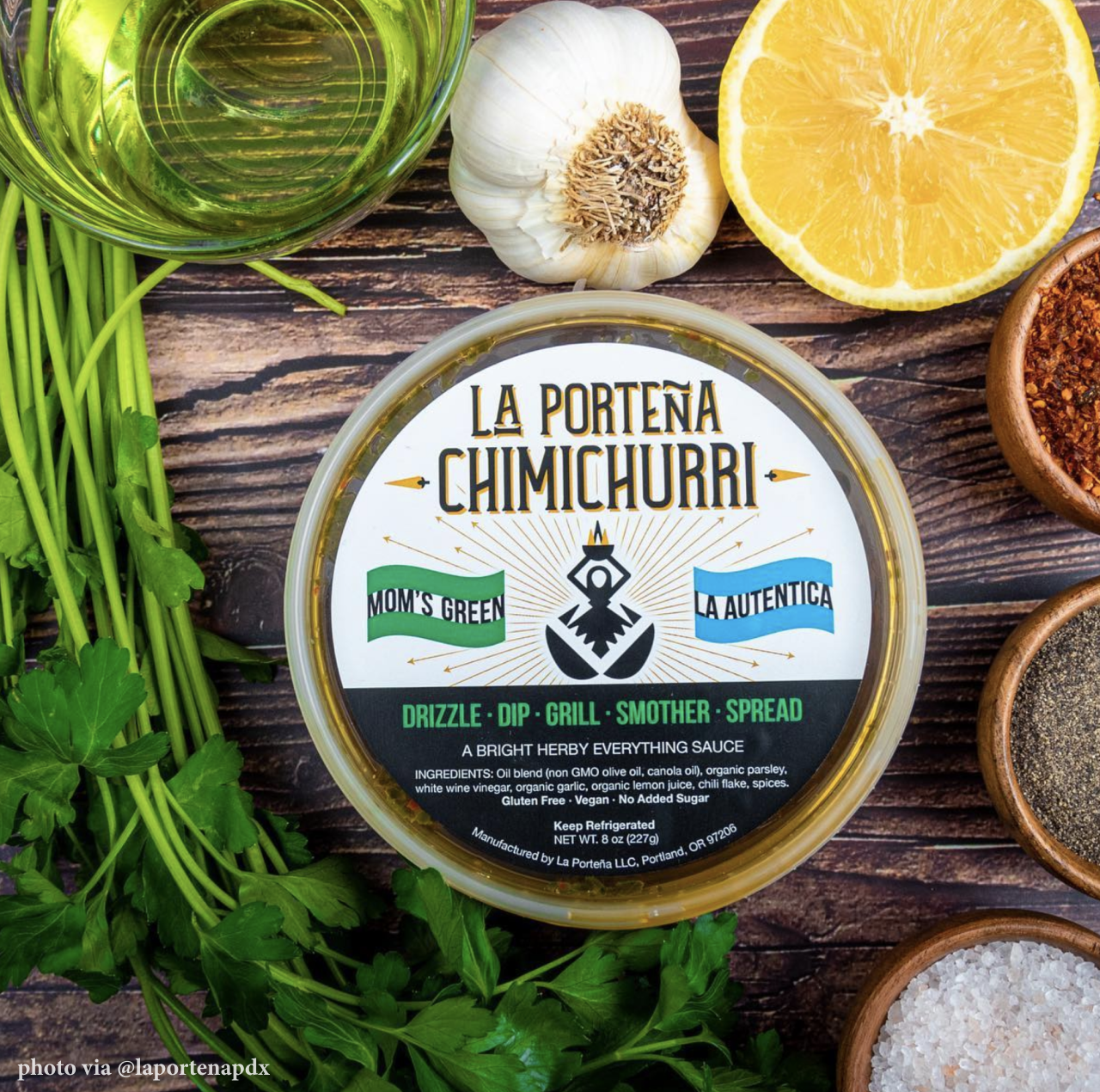 First generation Argentine-American Jessica Viciconte uses fresh, local ingredients to craft small-batch chimichurris right here in Portland. Her brand La Porteña’s sauces are equally at home as dip for crudites, bread, and salad as they are with piles of smoky grilled meats.