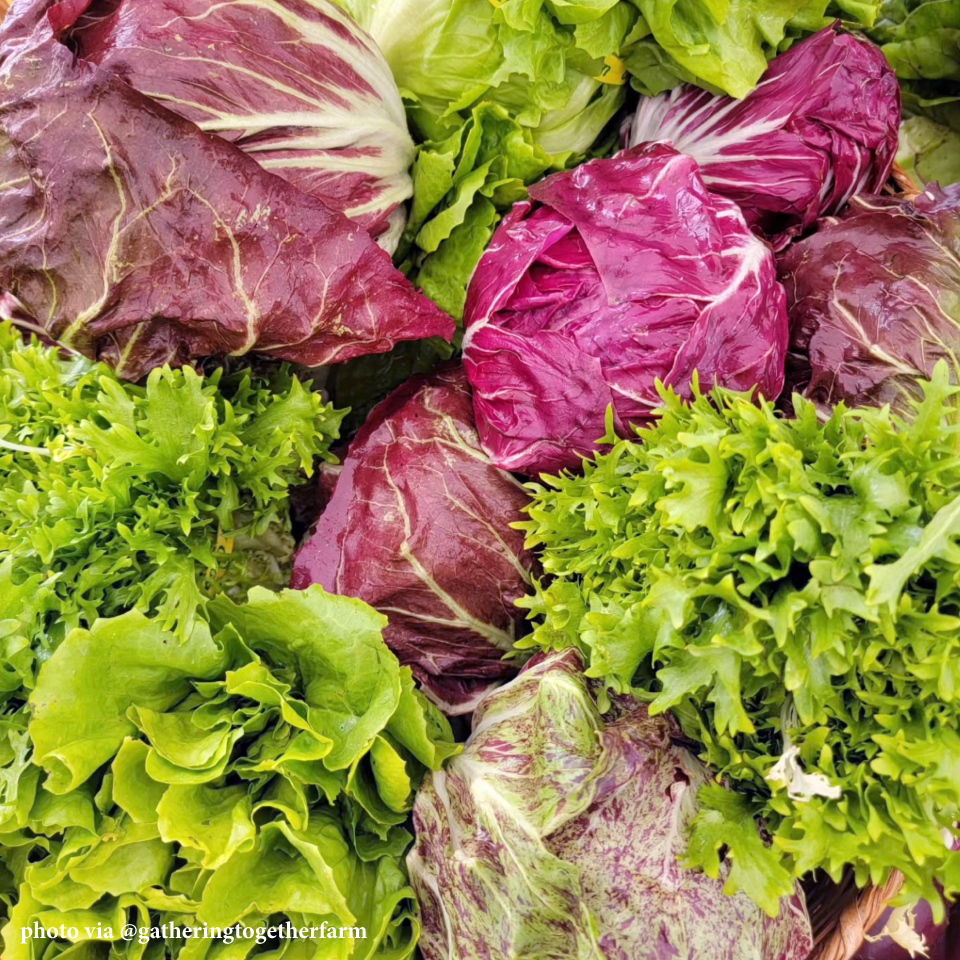 Those jewel-toned leaves? They’re not just salad filler. Our local growers are bringing in a parade of varieties — Chioggia, Verona, Treviso, and the occasional Castelfranco that looks like a floral arrangement masquerading as a vegetable. Bitter, crunchy, complex… radicchio is the winter vegetable for people who like personality.