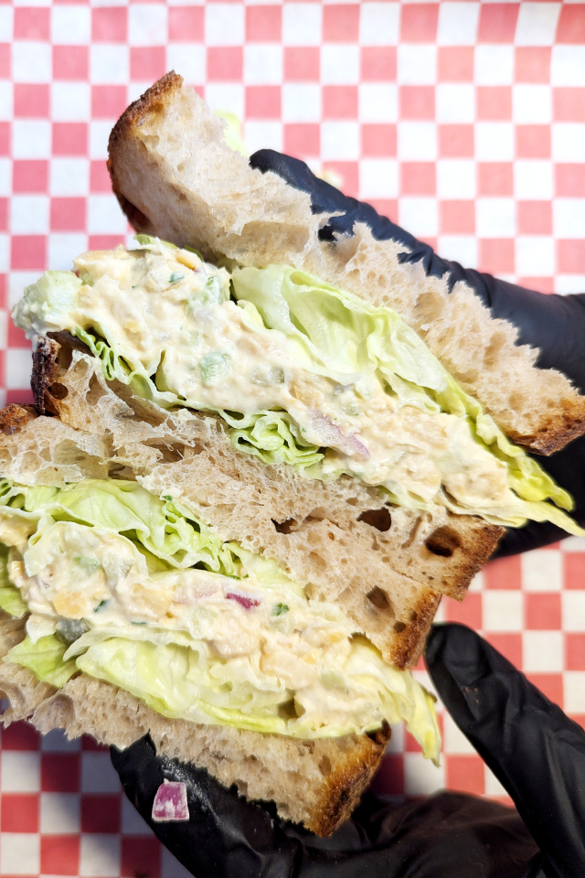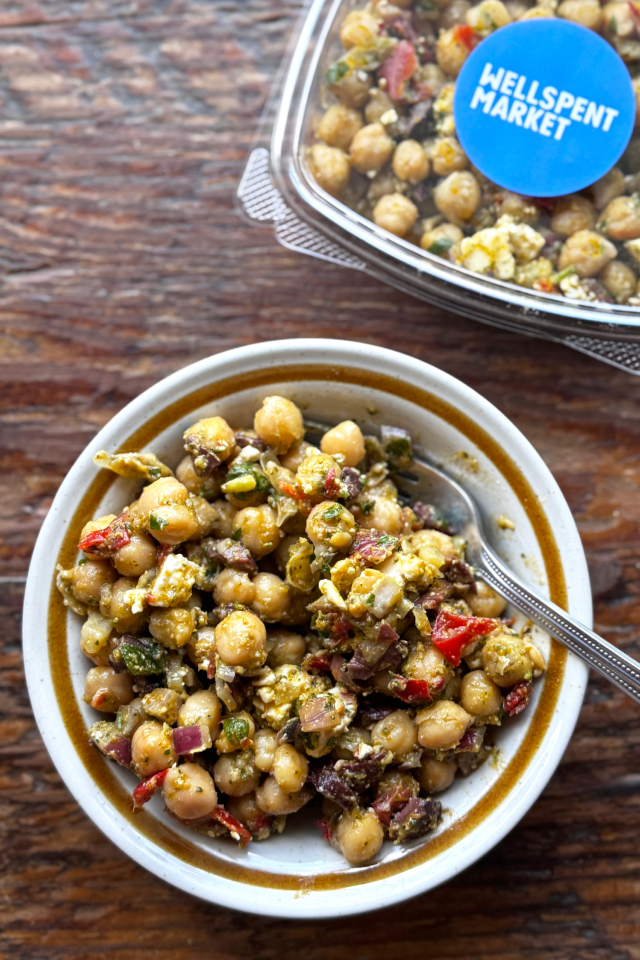 Our hearty chickpea salad features locally grown garbanzos tossed in our housemade pesto with Mama Lil’s peppers and parsley.